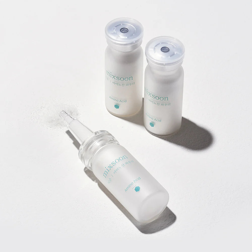 Coloca una pequeña cantidad de Amino Acid Powder en la palma de tu mano o añade directamente sobre tu esencia, suero o crema.